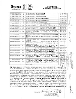 Conforme los contratos 11/CONTRATO/2018, 05/CONTRATO/2019 y el 11/CONTRATO/2019 el Gobierno del Estado de Oaxaca, a través del Sistema para el Desarrollo Integral de la Familia del Estado de Oaxaca, adjudicó un monto total de $1,356,248,882.91 (Mil trescientos cincuenta y seis millones doscientos cuarenta y ocho mil ochocientos ochenta y dos pesos 91/100), a la empresa “Prometeo Proyectos Ejecutivos S.A DE C.V”, en los años 2018 y 2019.